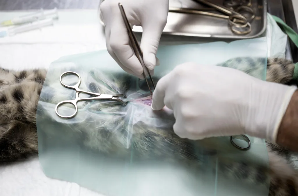 For males, that’s neutering (removing the testicles). For females, it’s spaying (removing the ovaries and usually the uterus).